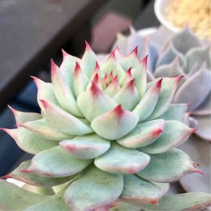 昨日、とても嫌なことがあり気分は落ちぎみです。でもいいお天気と多肉達に少し元気づけられました。 今日の子はジャガーローズちゃん😃 爪の先のピンクが濃くなっただけでまだあんまり紅葉してきません。 でも名前に「ローズ」って入ってるくらいだからもっとかわいくなると期待してる子💕 今も色白美人さんです(*´∀`)