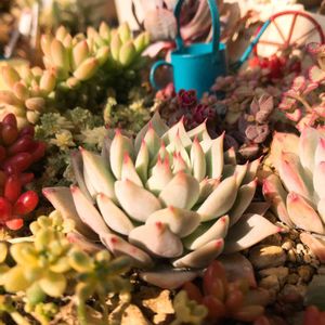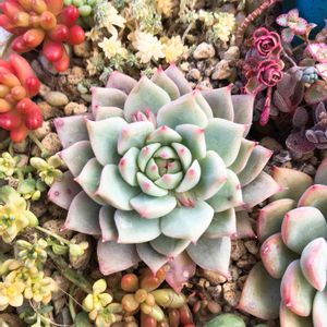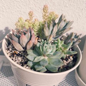 植え替え待ちの子達をぶっ込み寄せしました🐦 初夏の淡い色の多肉ちゃんもかわいいな🌞🐠✨