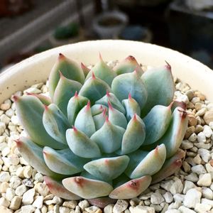 先週の土曜、エケベリア属を初めてお迎えいたしました🤗 桃太郎、先っちょのほんのりピンクがかわいすぎる❤️ 種類の多さに収集癖を刺激されます😍