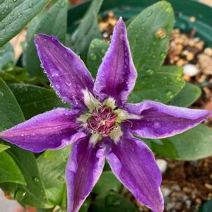 いい天気です☀️ 2年目のクレマチス サムライが咲いてくれました✨ この花のどの辺がサムライなのか☺️