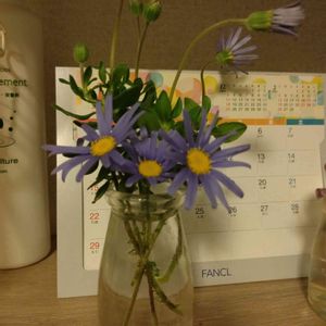 デカいお尻で折ってしまった ブルーデイジー😓ゴメンヨ… 秋にはネメシアでも全く同じ事を しでかしたのに学習能力皆無の kumaluluです…(ヽ´ω`)トホホ・・ 小瓶に挿して愛でます💙