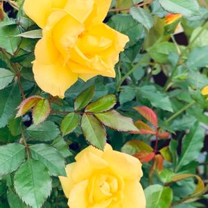 バラのレヨンドソレイユさんが開花を始めました! とても鮮やかなイエローです。
