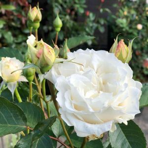 🌹エディットクラウゼ🌹 この薔薇はもう少し緑かなと期待して友達に接木を頼んだ薔薇です💕 でも綺麗な白で何時もきれに咲いてくれます。 2015 接木 鉢