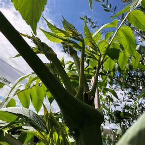 立山に初冠雪を観測したそうです どうりで今季一番の冷え込みでした でも平年より9日遅いらしいです 年々寒さがコタエます (*≧∀≦*) 春に苗で頂いた皇帝ダリア🌿 2m程になったので 芯を詰め 脇芽が延びてます〜 沢山の花が見れます様に❣️