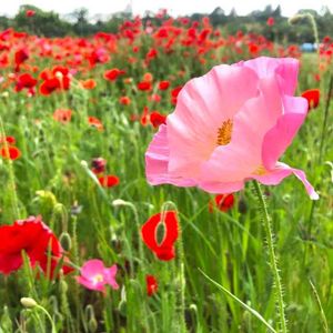 真っ赤な花の中に淡いピンクの花が風に揺られて咲いていました。 自分を撮って欲しかったのかな(笑)