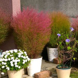 我が家のコキアも色付いて来ました😃 鉢によりバラツキはありますが、家で一足早い紅葉を楽しみます😃