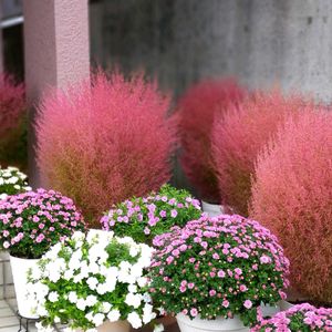 🍀🌻🪴💐🌹🌻🍀 🍀💚コキア(ホウキグサ)💚🍀 💐コキアの花言葉は(恵まれた生活) (あなたに全て打ち明けます) (夫 婦円満)です 💐コキアはアカザ科・ホウキギ属の 植物でふんわりと丸い樹形が特徴 です 💐春は鮮やかな緑、秋には赤や黄金 色に葉を染める紅葉が見られ、8月 ごろに目立たない小花が咲きます 💐日本では(ホウキギ) (ホウキソウ) などと呼ばれ、これらはコキアの 枝が古くからホウキの材料として 用いられたことにちなんでいます 🍀🌻🪴💐🌹🌻🍀
