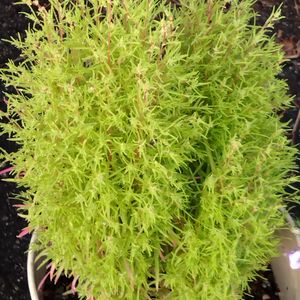 コキア! 茎の部分が赤く(紅葉?)なって、葉っぱの色も少し抜けてきました! このまま秋を迎えれば紅葉するのか⁉️心配でもあり楽しみです😀