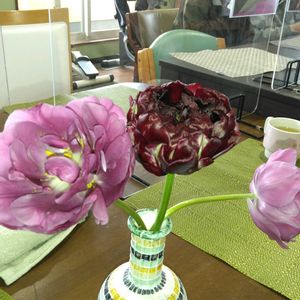 4/23 14日upの八重咲き混合🌷赤に続いて現れたのは白ピンク〜でした🥰