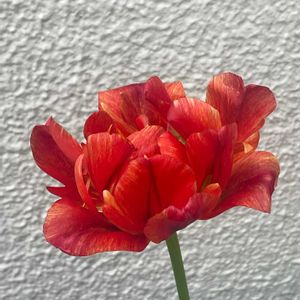 花壇のチューリップ編、最後は真っ赤な八重咲きチューリップ🌷 ミニ牡丹のようでとてもゴージャスです(*˙˘˙*)ஐ 我が家の花壇のチューリップ編❹ 見ていただきありがとうございます