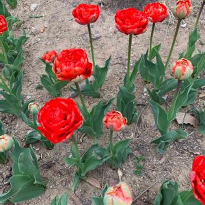 八重咲きチューリップ きらびやかな赤が素敵でした😊