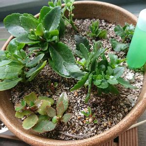 育つ気があるのかないのかわからない八重咲きカランコエたち。この鉢を秋までキープできる気がしないよ