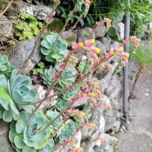 七福神の石垣のにぎわい🌸 オルレア ご近所さんの広い庭 ホタルブクロ 去年より増えてます😊