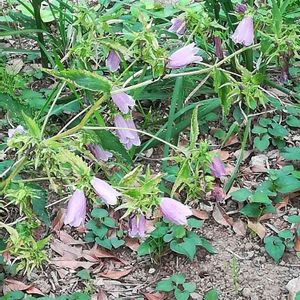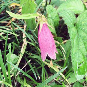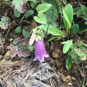 仕事先の庭の花壇に気がつかない内にチンチロリンと咲いていたほたるぶくろ 初めて気がついた!(*_*)