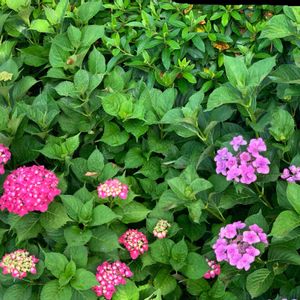 紫陽花が、ピンクや赤や青や白色を纏い小雨ふる中カラフルに飾ってくれてます😄