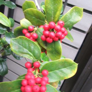 セイヨウヒイラギでしょうか⁉️ 実が赤く染りました🔴 クリスマス前になると毎年義母がクリスマス仕様に飾ります🎄🤶