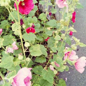 まっすぐ伸びた茎に咲く花 タチアオイ。 大望、野心、豊かな実リ、 素晴らし花言葉があります。 散歩道にて。