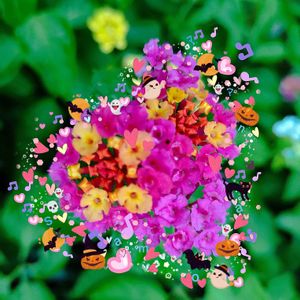 ➀❁ランタナ七変化 ハートに見えたので よりハートにしてみました。 ③金曜日の蕾たち ➄picに色々スタンプポンポン 更にカラフルになりました。🤭😘 小さな小さなお花の集合体 今月も沢山見て頂きイイネ も有り難う御座いました…🙇♀ いよいよ大好きな パンビオの季節 多忙過ぎて お花見に行けてない (´Д⊂グスン(泣)