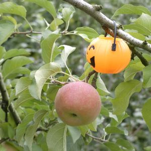 「リンゴ🍎とカボチャ🎃」 近くのリンゴ園では、毎年こんな風に小枝に飾りものをしています。 大きさもリンゴ🍎と同じくらいです。 🏷ハロウィーン