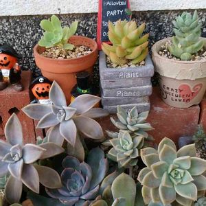 『ハロウィーン』と『スターバースト』☘☘ 小さくて可愛い💕 最近アエオニウムが可愛いくて好きです(*^^*) メルカリで買いました。 夏場は植え替えない方がいいかな?