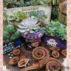 おはようございます👋😃☀️ 今日はすごく蒸し暑い日ですね😅体に堪えます💦 以前、家族で、栃木の『あしかがフラワーパーク』に行って、購入したサボテン🌵の鉢に、ハロウィーン風寄せ植えしてみました🎃🧹 丸いサボテンをカボチャに見立てて、秋らしい雰囲気にしてみました🍀😉✨💖