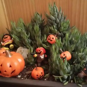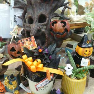 ハロウィーン🎵 多肉植物や秋色の花に小物を添えて気分⤴⤴⤴