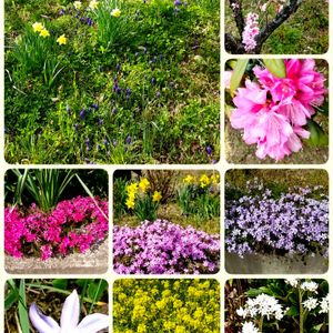 実家の庭🏡 昨日は仕事が午前中だけだったので 実家の花はどんなかなぁ❔と 偵察に行って来ました(*^-^) 上段の大きなpicは私の大好きな庭の斜面✨✴️ スイセンとムスカリが 一面に咲き広がっています💛💜 子どもの頃からの見慣れた風景に ついついホッとしちゃいます♪ &源平ハナモモのピンク💞 (白は上手く撮れてませんデシタ💧) と、シャクナゲ💗 中段はシバザクラ🌼 白も咲いていましたよ♪ 下段は庭のあちらこちらに 勝手に?咲いていたハナニラ☆ →ハクサイのお花(菜の花) →イワヤツデ(別名 タンチョウソウ) たった30分弱の滞在でしたが リフレッシュ出来ました🍀