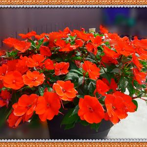 サンパチェンス💛パッションオレンジ 昨日🏡実家に寄った際にパシャリ🤳✨ 目の覚めるようなビタミンカラーです💛💛 北向きの玄関前に置いてあるのに 梅雨前に見た時とほとんど姿が 変わっていないことにびっくり(‘0’) 流石、サカタのタネさん‥🤗
