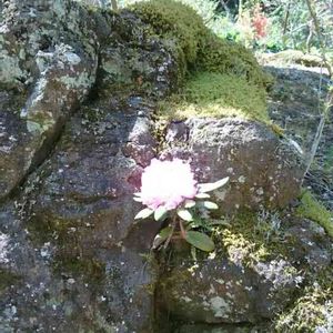 実家の庭④ 祖父のシャクナゲ😌の近くの岩 岩の間からひょっこり顔を出していて びっくり(✽ ゚д゚ ✽)です ※撮影下手っぴだなぁ^^;