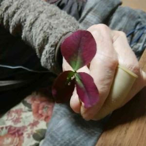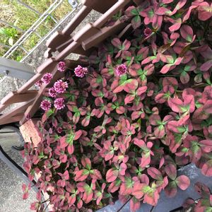 株分けしたクローバー🍀 この赤いのはお花❔ 可愛い💕❣️ 葉っぱも赤く染まり、見逃すところだった😆