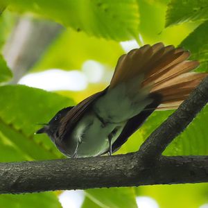 🐦写んぽ ノッポになり過ぎた『イタドリ』 『サンコウチョウ』 ②♀も到着 ③♂、追っかけ回してた 林の日陰の木の高い所を飛び回っているので撮るの難しい