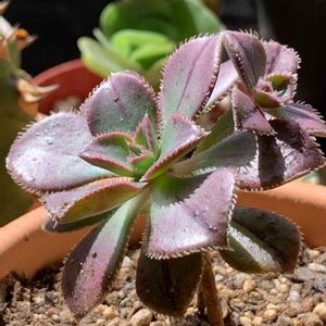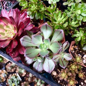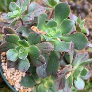 小さなアエオニウム 「マスカエンセ」 去年、小苗の2ポットからはじめて お子様だいぶとれたので メルカリデビューさせました〜〜♡♡♡ 葉っぱの周りがギザギザで とてもよく子ぶいて 育てていて♡愛らしい子です(^ν^)