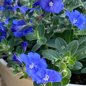 おはよう御座います🥰 今日も暑くなりそうですね😣 涼しそうな青いお花送ります。 pwフラワー エボルブルス ブルーラグーン 切り戻ししたら、咲いてきました。 茎のどの辺で切ったらいいか 解らず適当です😋😋😊