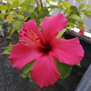 まだ咲くハイビスカス 今年は気温がまだ高いのかな⁉️一年中出しっぱなしで越冬する強い品種みたいです。
