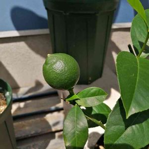 今年の春に鉢植えした レモン (リスボン)🎵 夏に付いた実は落ちると 言うが本当かな⁉️