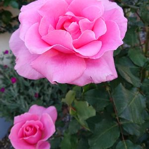おはようございます😊 今日のお花は薔薇の アロマセラピーです🌹 今まで大輪が超大輪に去年より咲くようになりました🌹でもピンクで可愛いです🌹🌿😊 今日も1日お元気に〜😊