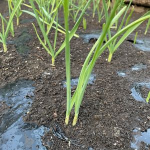 ニンニクの芽が余計に出て来ました😆調べたら間引いた方が良いらしいので一本にしました🧄