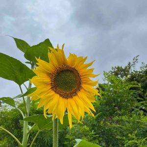 どんよりしてますが、我が家のひまわり🌻咲きました🌻去年の溢れ種から開花です♪♪