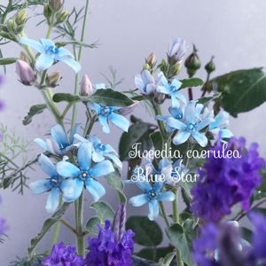 ◎ブルースター 大好きなお花ブルースターがチラホラ咲きました\♡︎/ 蕾もぷっくりして色といい可愛いんです いつもは切り花を買ってましたが これは去年苗から育てて冬越しも出来てやっと咲きました\♡︎/ ブルースターは意外と強いね しかし雨降りの朝のショットは暗いね〜💧 本当はもっと綺麗なんだけどなぁ🤭 花言葉は幸福な愛¨̮♡︎信じ合う心¨̮♡︎