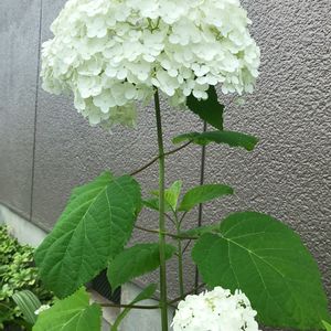 でかっ! *アナベル* 裏庭に 挿し穂で育てたアナベルが あるんだけど 今朝みてびっくり〜👀 でかっ‼️😆 思わず計測して記録_φ(・_・ 花周り約65㌢ 直径 約25㌢ 花高さ約16㌢ 半日陰の砕石まじりの土で 茎も3〜4本しかない挿し穂育ち。 去年特別な事した訳じゃないんだけどなー🤔