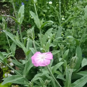 リクニス、開花🌼第1号。 満開になるのが楽しみ🎶 いつの間にか後ろのタナセタムも咲いてる☺