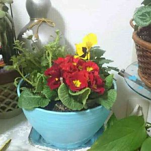 ❄今日寒い中🌺🍀赤いお花とパンジーを寄せ植えしました❗