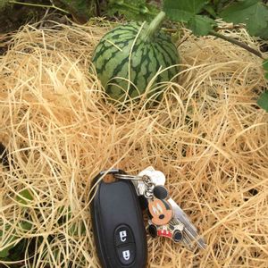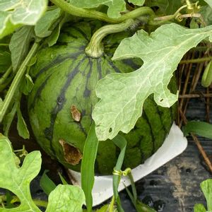 雨上がりに畑に行ってビックリしましたぁ😄 スーパーで見かけるような大きなスイカが転がってました😂 急に大きくなったようです。 初めてのスイカ栽培ですが、とても感動しましたぁ✨ 後は収穫時期が問題です。 スイカの付け根の巻きひげが茶色くなった頃と言うことですが、わかるかしら😱