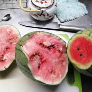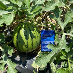先日食べられたので、しっかり管理して、収穫してきました。 種が多いですが、ありがたくいただきました。仄かに甘い 第1号 小玉スイカ