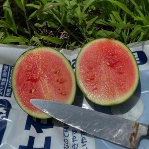 音を聞き、ツルも枯れて、サクッと包丁入ったのに、早かった。 ただいま4勝3敗。 残りあと5球 小玉スイカ🍉