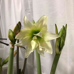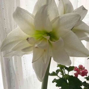 おはようございます😃 昨年、購入したアマリリス八重咲き種アイスクイーン咲き始めました🌸