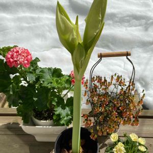 アマリリス アイスクイーン 今年も出会えたᵗᑋᵃᐢᵏ ᵞᵒᵘ ¨̮ バスケットの寄せ植えと一緒に…