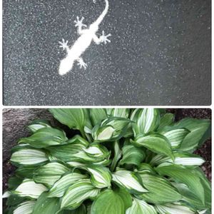 今年初のヤモリくん この季節には毎年我が家に出没 触ったりできないけど、お家を守ってくれてると信じてる♡ 斑入りギボウシ、株が大きくなってきています♪