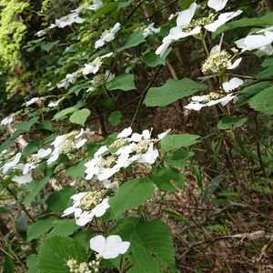 長野県の阿寺渓谷で出会った白い花。 ヤブデマリのお花のようです。
