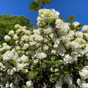 [My garden] 藪手毬(ヤブデマリ)さん 満開です♪ 今年9年目。 最初は鉢植えだったけど 今では1m以上 大きくなりました😊 緑がかった白から白に変化してきました。